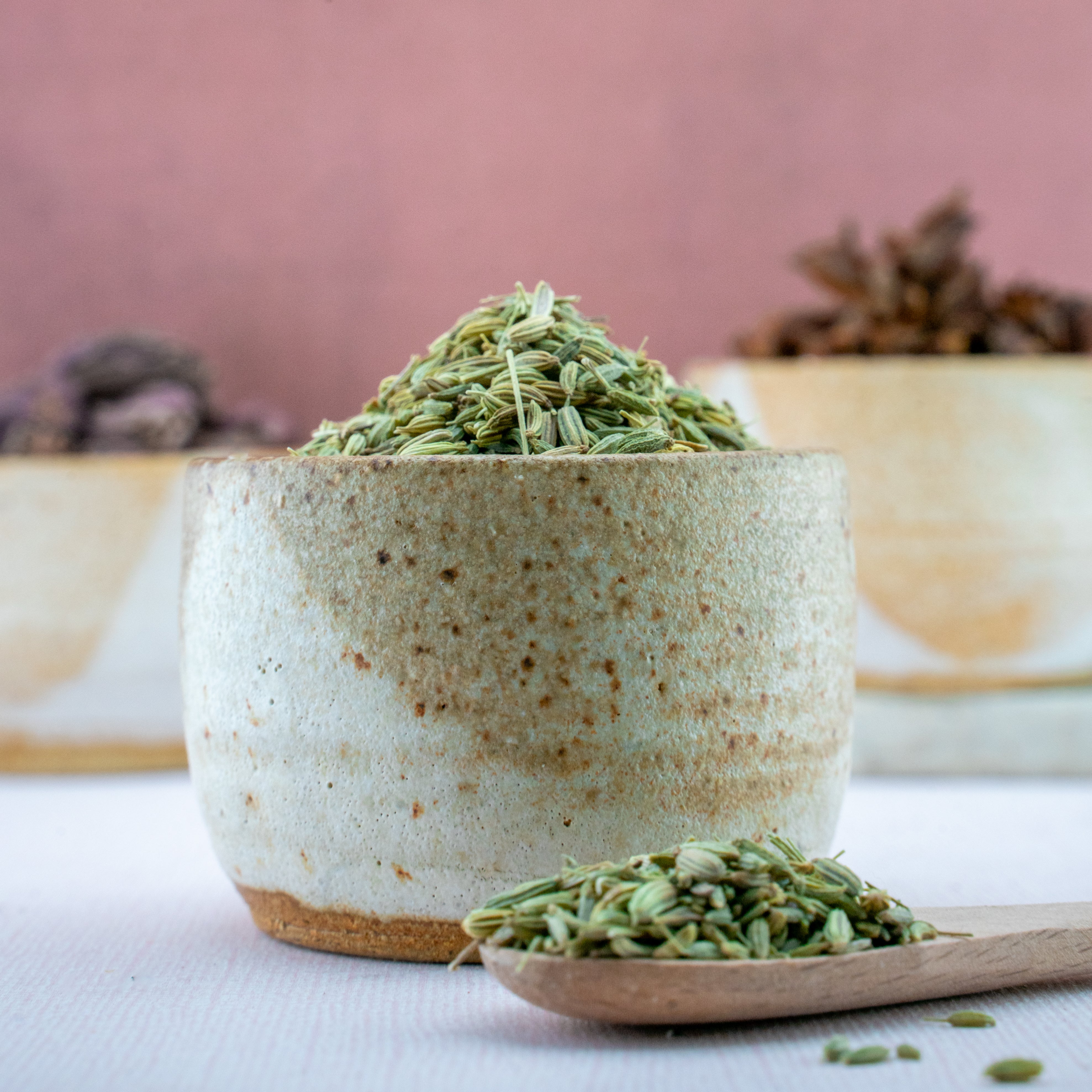 Fennel, also known as saunf, is a flavorful perennial herb in the Apiaceae family alongside cumin and carom seeds. This hardy plant serves as an integral spice in many cuisines - including Italian & Indian - and provides a subtle anise-like flavor. Our fennel is grown at a cousin’s organic farm in Rajasthan, India.