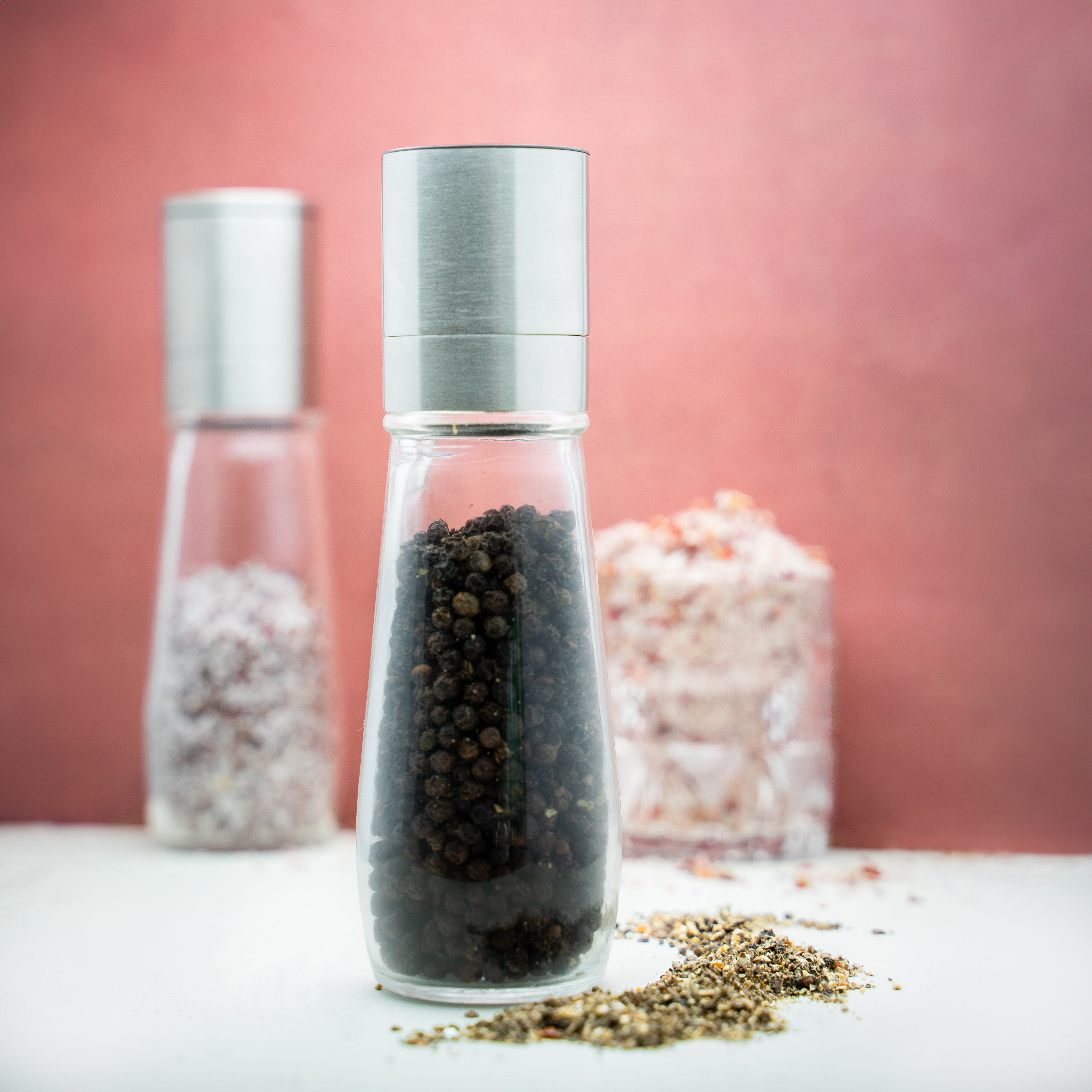 Our spice mills are made from high grade materials like lead-free glass and food-grade stainless steel for style, durability, and functionality. The adjustable milling mechanism is made from durable and eco-friendly ceramic and lets you control how finely you want to mill your spices.